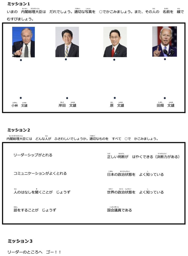 「内閣総理大臣」ディスカッション用テキスト今週は「内閣総理大臣」について、ディスカッションを行いました。今週は形式をミッション形式にして、みんなで挑戦しています。