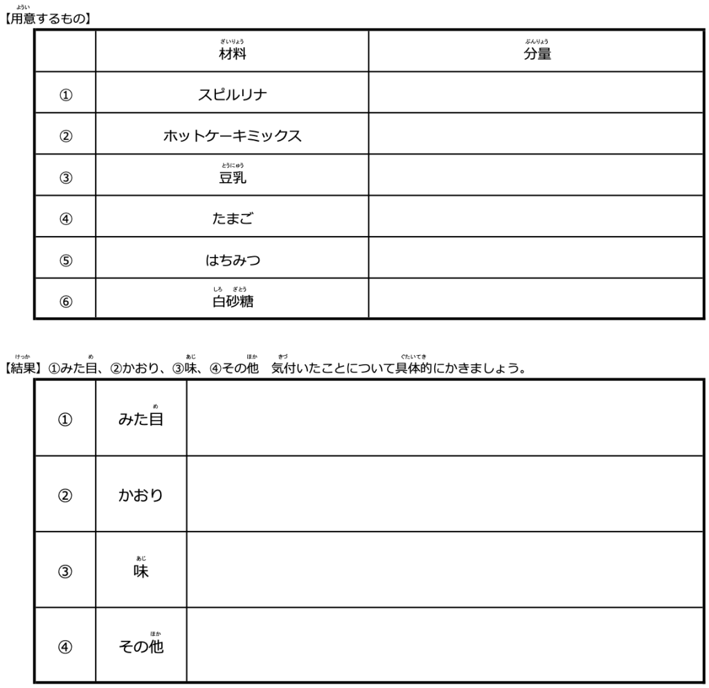 2025年3月21日 / 最終更新日時 : 2025年3月21日 jumpkidsforschool ディスカッション ディスカッションまとめ3/17〜3/21「スピルリナ」「スピルリナ」ディスカッション用テキスト今週は「スピルリナ」についてディスカッションを行い、実際にスピルリナカステラを作りました。今回のディスカッションテーマにおけるSDGs目標実験の様子ホットケーキの生地を作ります。その後、スピルリナを混ぜます。色が濃いー!焼けたかな?みんなでひっくり返します。試食をしてそれぞれ気付いたことを書いていきます。\ 最新情報をチェック /FacebookXBlueskyHatenaCopy