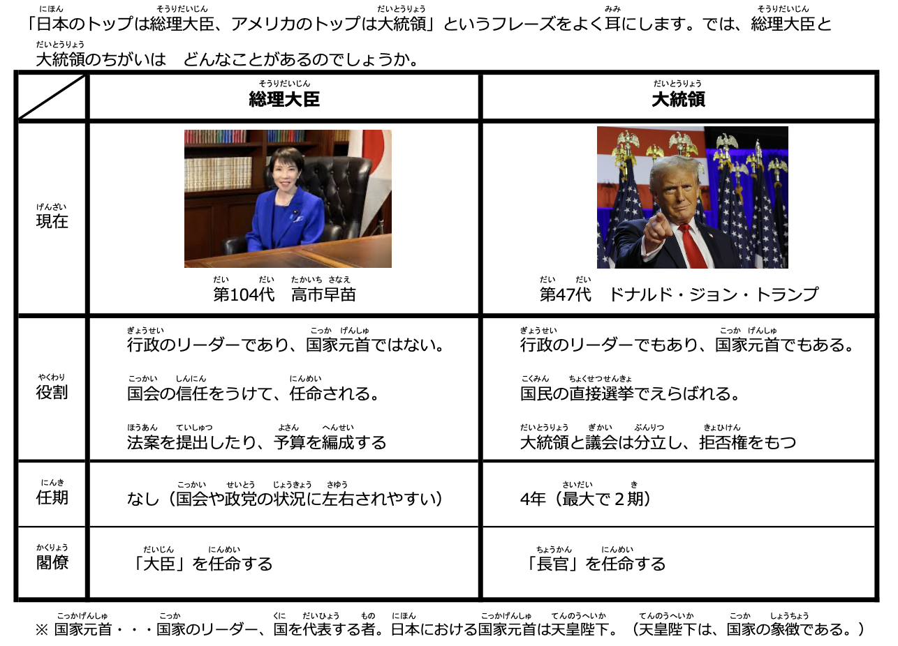 総理大臣と大統領のちがいについて話していきました。