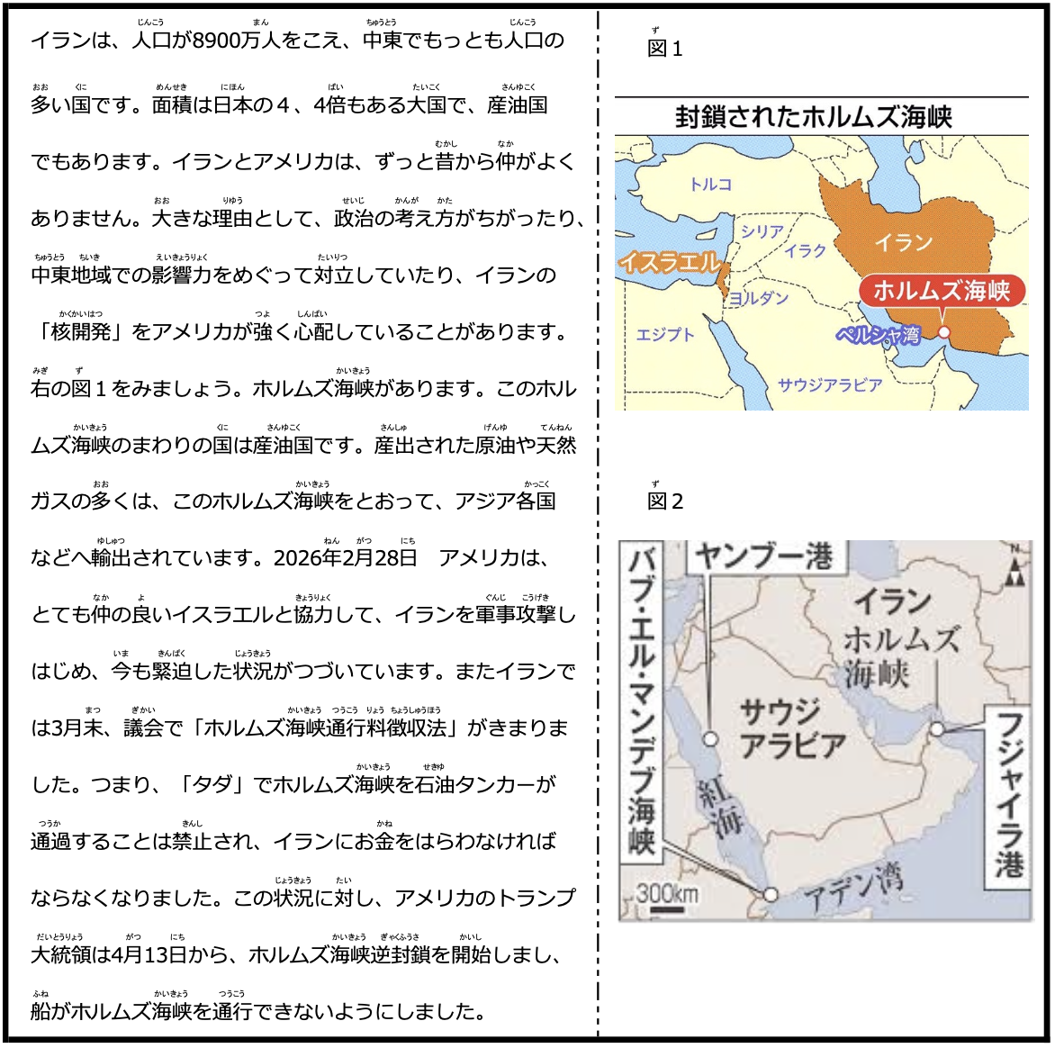 トランプ大統領が提案した「ホルムズ海峡の(逆)封鎖」のような、複雑な国際情勢や地政学的なニュースを題材にディスカッションを行うことは、子どもたちにとって非常に高度で多面的な学びの機会になります。